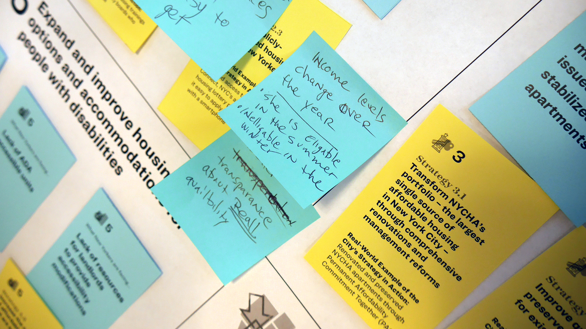 To ensure alignment across HPD, we co-designed an engagement plan that set goals, defined success, outlined project outcomes, and laid out a distinct data collection plan. In addition to co-designing public workshops, we developed an outreach plan and materials to support the HPD team in their efforts to engage a wide swath of New Yorkers. By reviewing the existing Where We Live NYC plan, we were able to identify target audiences and communities whose voices we wanted to amplify in the data collection phase.